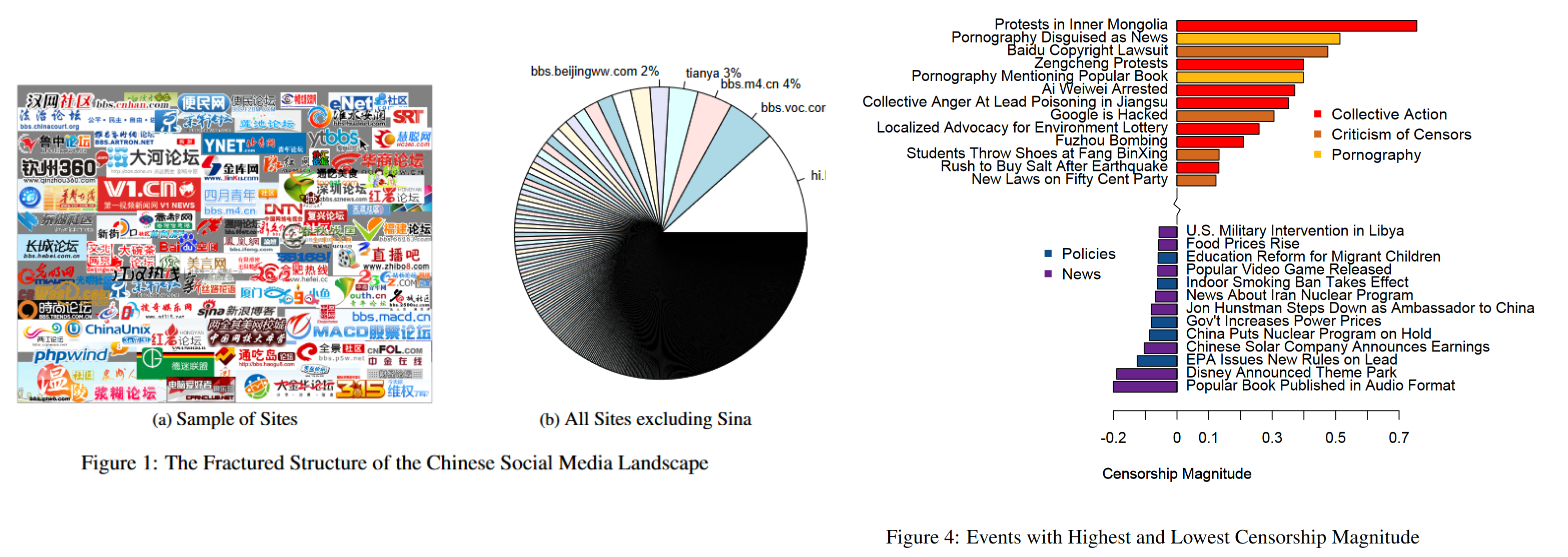 또 하나의 예시를 살펴봅시다. 정치학자인 Gary King과 동료들은 2013년 중국의 인터넷 검열에 대한 논문을 발표합니다.